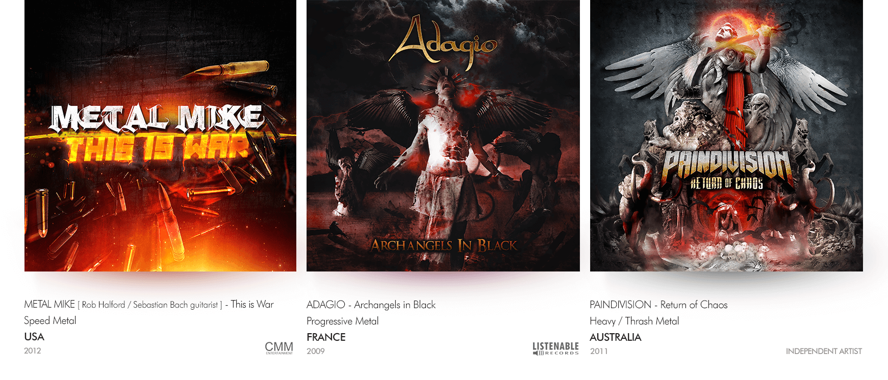 As a freelancer, eversince my University days, I've been working for relevant rock and heavy metal bands, designing album covers, booklets, and artworks for apparel and posters. The American guitarist Metal Mike (Sebastian Bach/Halford), Dave Evans, Original singer for AC/DC from Australia and French band Adagio are part of my client list. Some artworks made for them were featured in online publications dedicated to graphic design, like Abduzeedo and Smashing Magazine.